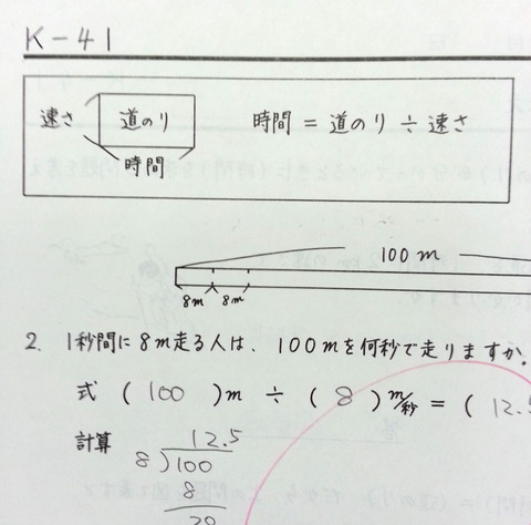 算数の速さの問題で、『みはじ』、とか、『はじき』、とか教える先生は先生失格です ・速さとは、一定(単位)時間あたりに進む道のり(距離)である。 『みはじ』とか『はじき』で計算してきた生徒のほとんどはこのことを理解しない